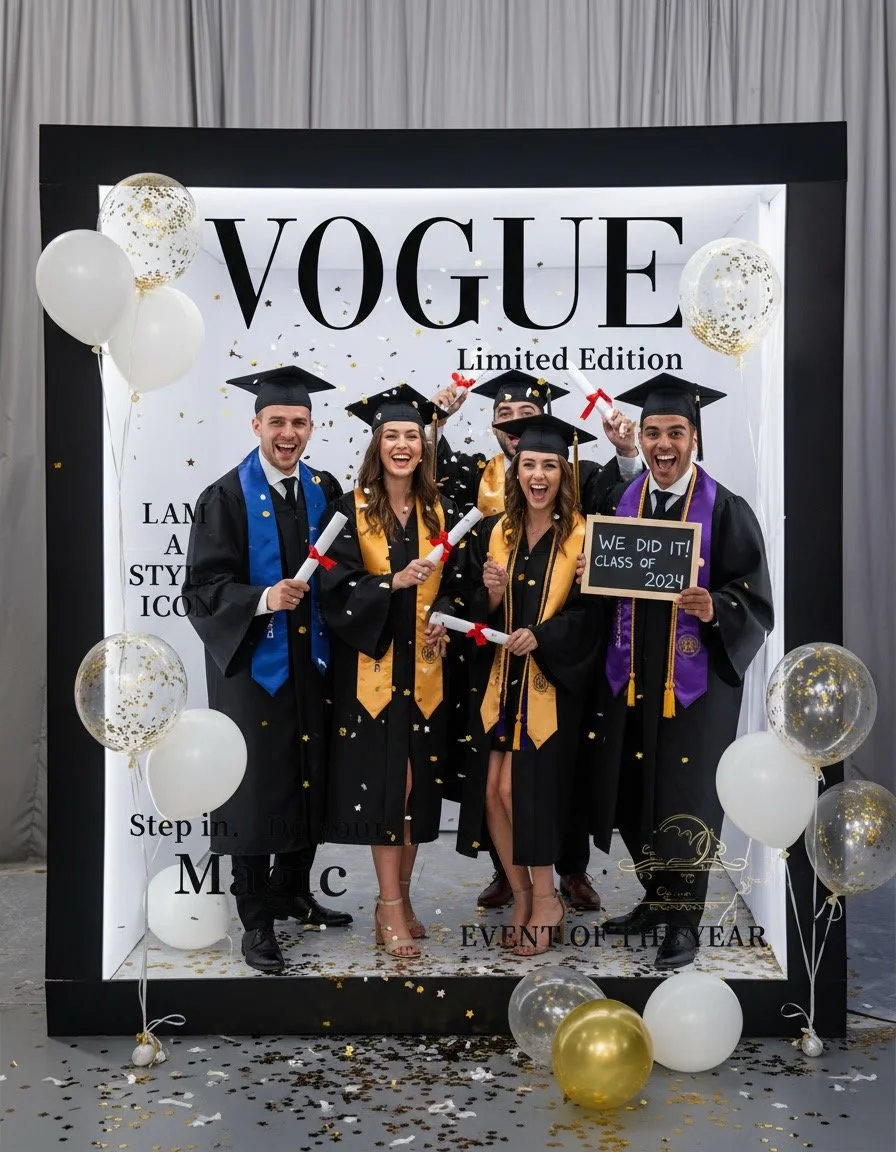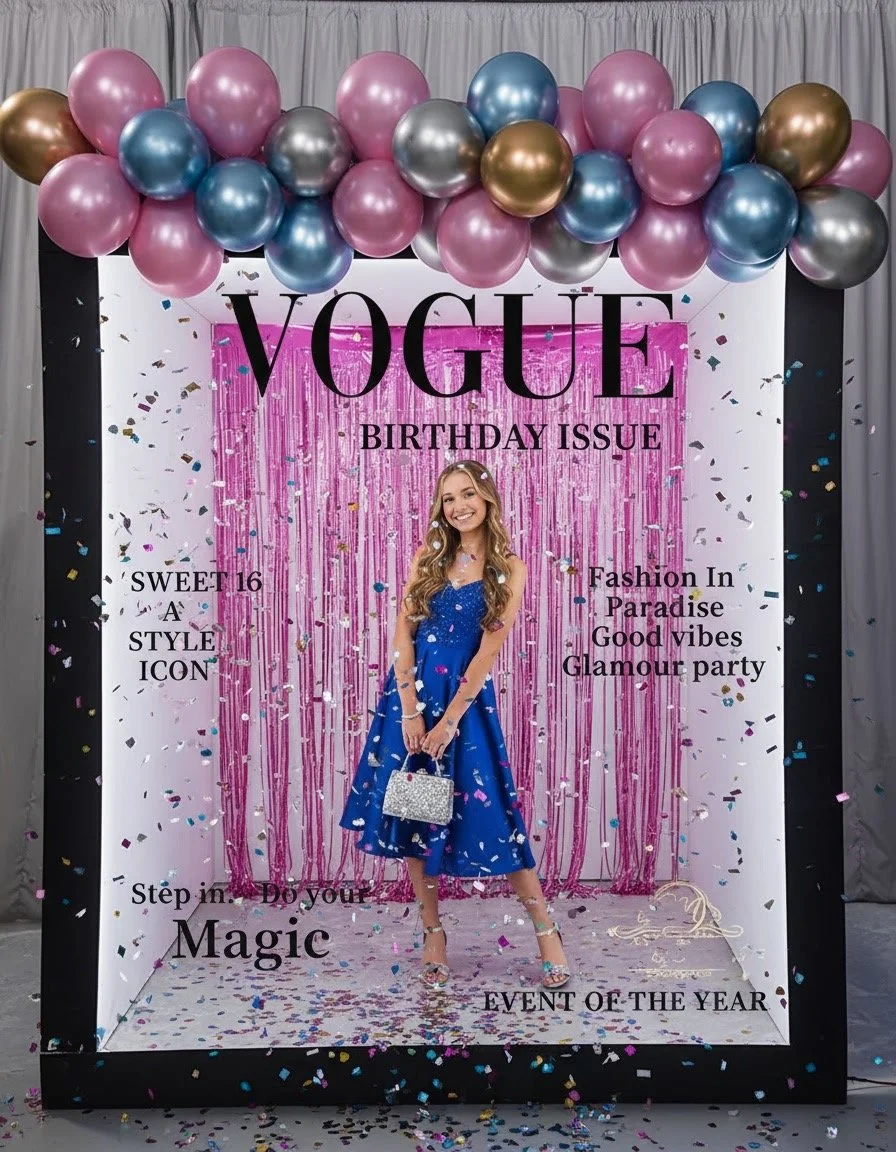 Your guests step inside a professionally designed Vogue-style photo booth.